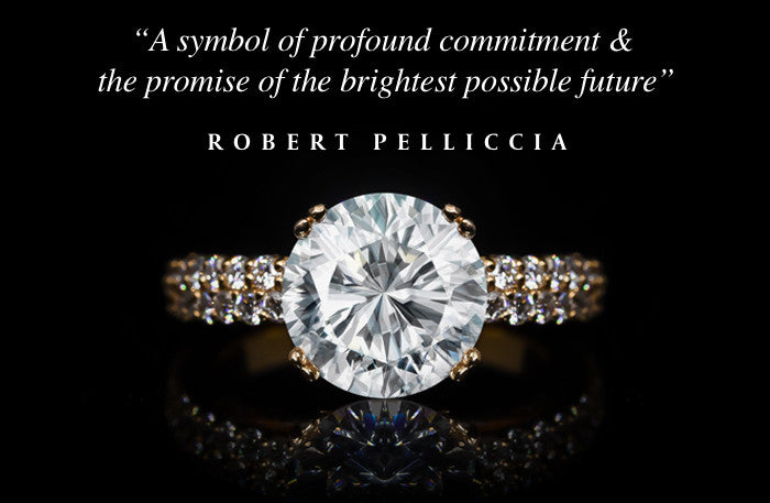 The Romancina collection by designer Robert Pelliccia’s hosts a striking oval sapphire and diamond ring that’s set in18kt white gold. The oval center stone sits on a vibrant blue sapphire band that’s encrusted with diamond accents.